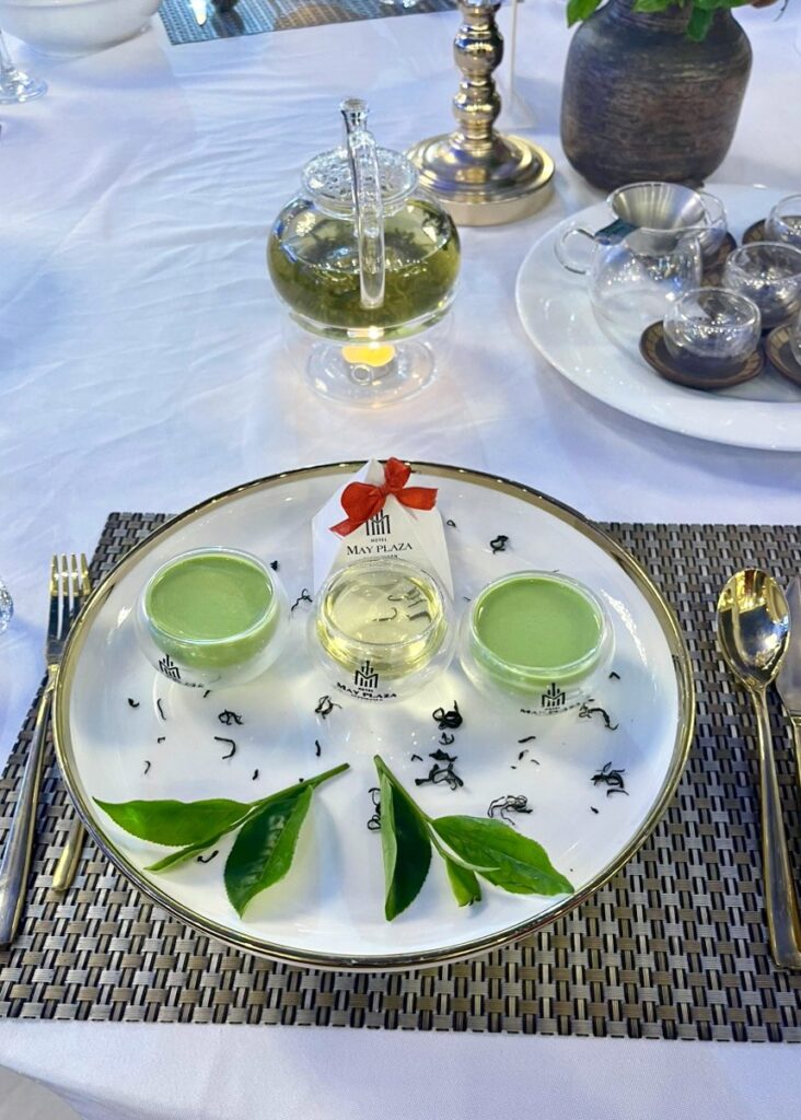 Điểm nhấn trong thực đơn đặc biệt của khách sạn May Plaza là nguyên liệu trà xanh được đầu bếp kết hợp khéo léo, tinh tế trong mỗi món ăn, hoặc nổi bật hương vị đậm đà, hoặc thoang thoảng nhẹ nhàng dư vị thanh mát.